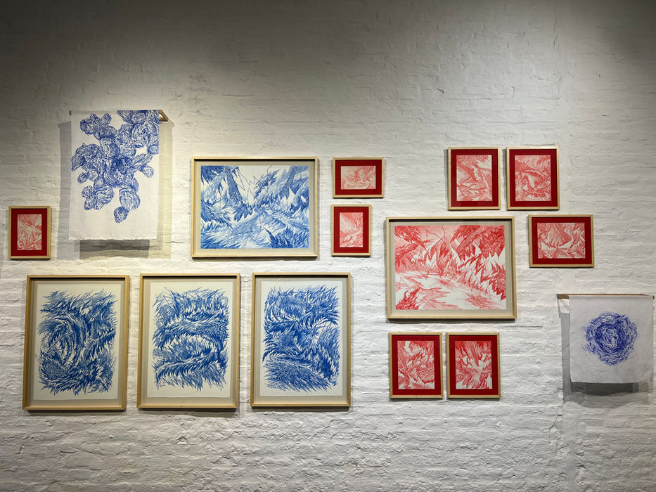 LULU LOBO umbral - 2023 UmbraL Hay en la lexicografía un fenómeno que procede de la inexactitud al que llaman mot fantôme. Una palabra fantasma es aquella que, por error de impresión, de lectura o de interpretación, deviene en un espejismo. ¿Qué es entonces aquel espejismo, sino una nueva y extraña forma que deriva de la franca intención de lo que se pretendía? Lulú Lobo explora en las oquedades de una práctica secular y estricta seducida por su exuberancia y copiosidad. Fascinada por las posibilidades infinitas resultantes de una matriz, replica movimientos y gestos que cobran forma y se expanden como geometrías nebulosas que hacen de la inexactitud y el error, un factor precioso y fundamental. Javier Soria Vázquez